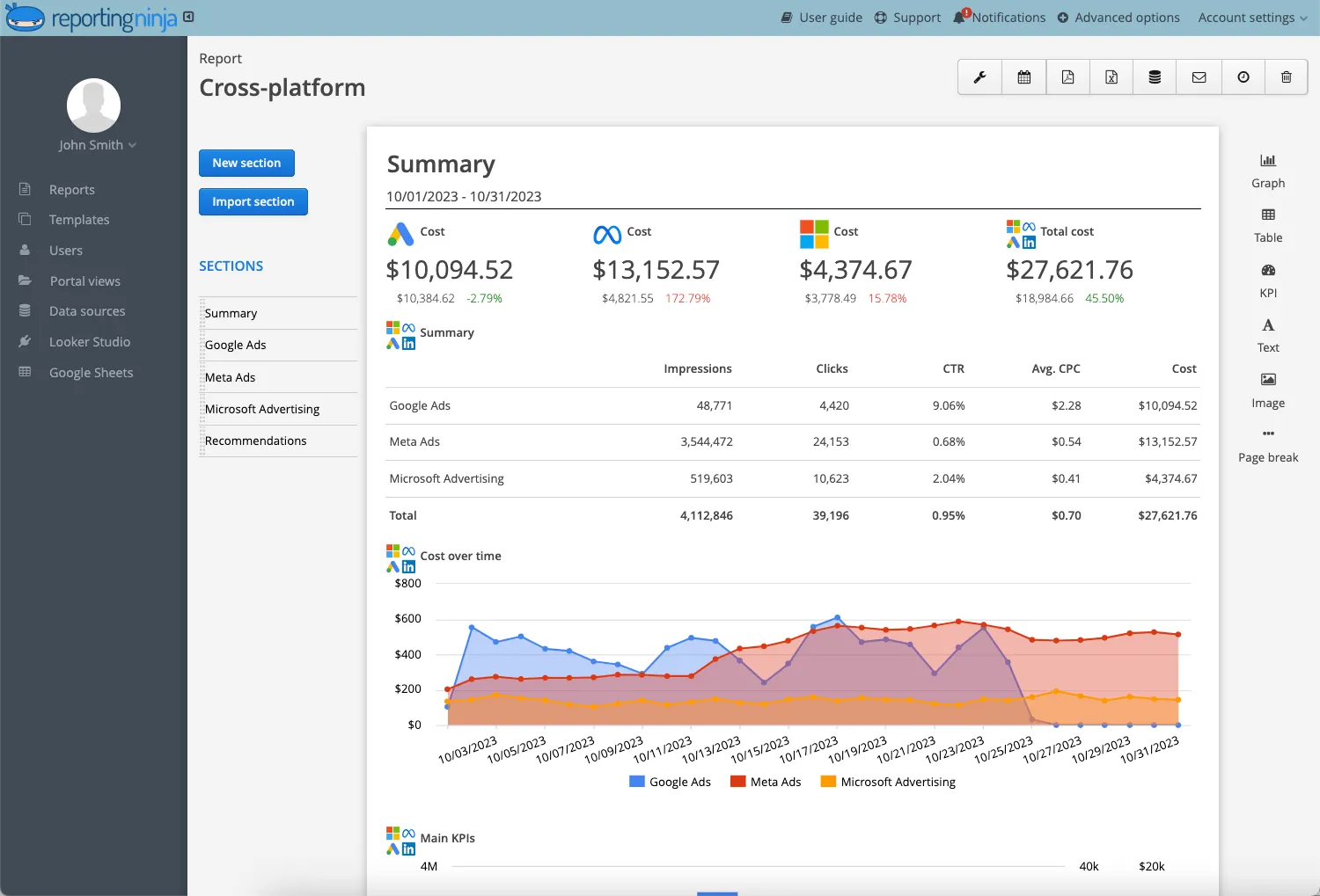 Reporting Ninja brings all your PPC metrics into one place, eliminating manual data collection and giving you a consistent view of performance across every advertising channel. Instead of switching between dashboards or updating spreadsheets, you can track CTR, CPA, ROAS, and other core metrics from a single automated reporting platform.