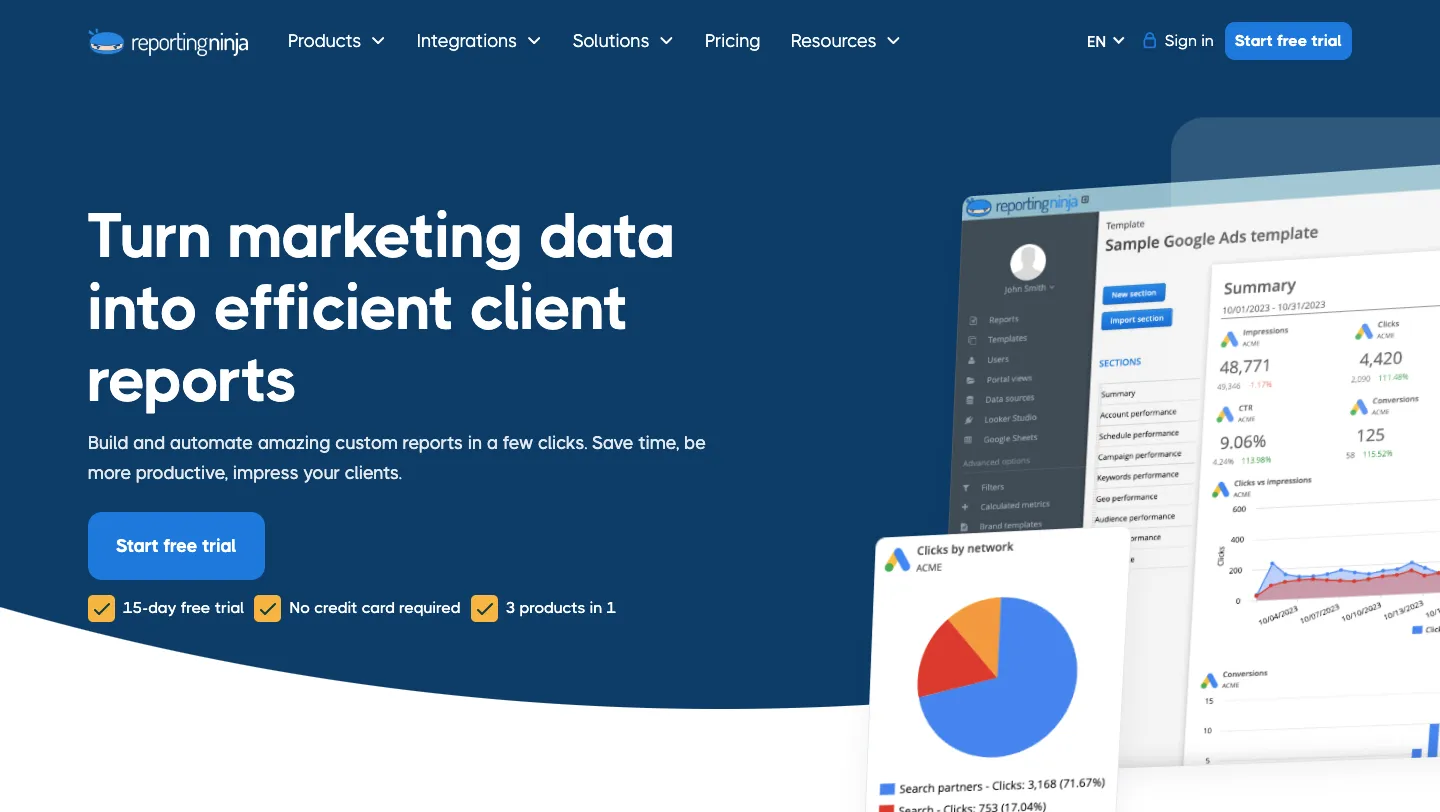 If AgencyAnalytics feels rigid or expensive at scale, Reporting Ninja offers a simpler, more flexible option—without the surprise add-ons. Built for agencies that value customization, it includes all features in every plan, with no premium gatekeeping.