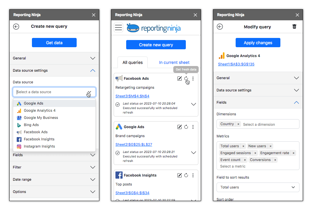 Reporting Ninja supports Looker Studio dashboards and reporting workflows that also deliver into Google Sheets or its custom reports platform, which helps when different stakeholders want different formats.