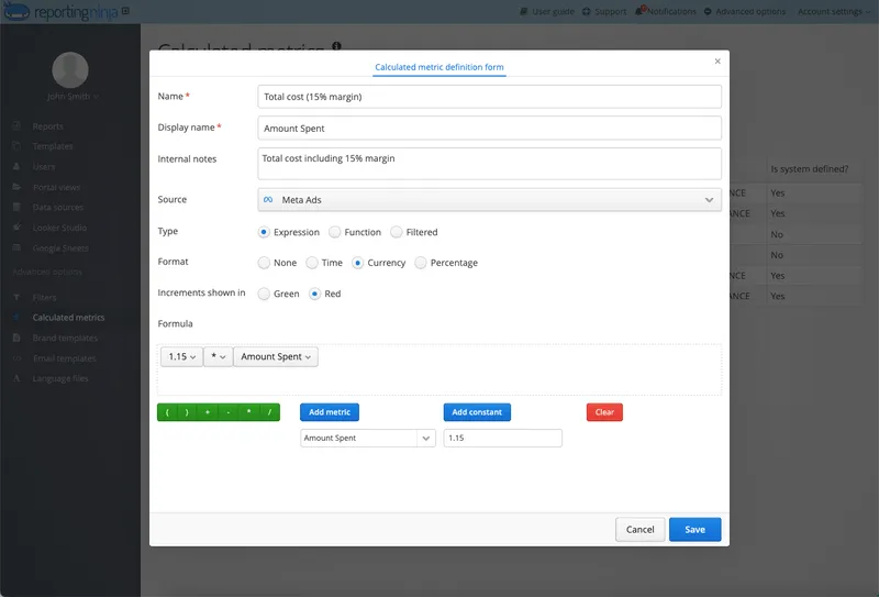 Show ad spend with your agency’s fee baked in. Whether it’s a fixed amount or percentage-based, you can include your margin directly in reports—no extra math, no confusion.