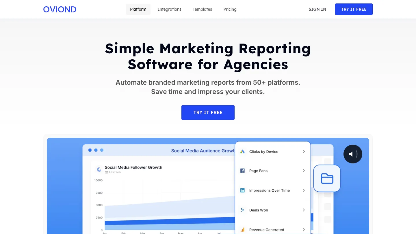 Oviond is a lightweight reporting tool designed for small teams and agencies. It combines Facebook Ads and other marketing channels into unified dashboards using a drag-and-drop editor.