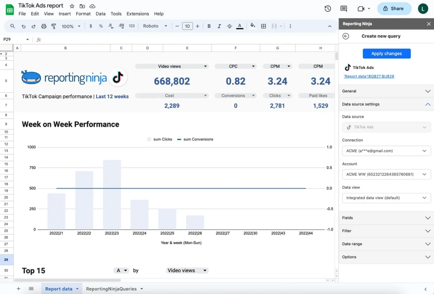 If your reporting workflow starts in Sheets, Reporting Ninja also supports pulling marketing data directly into Google Sheets for an analysis report with Looker Studio. This is useful when you want more control over calculations, blending, or building a “single source” sheet for multiple dashboards.
