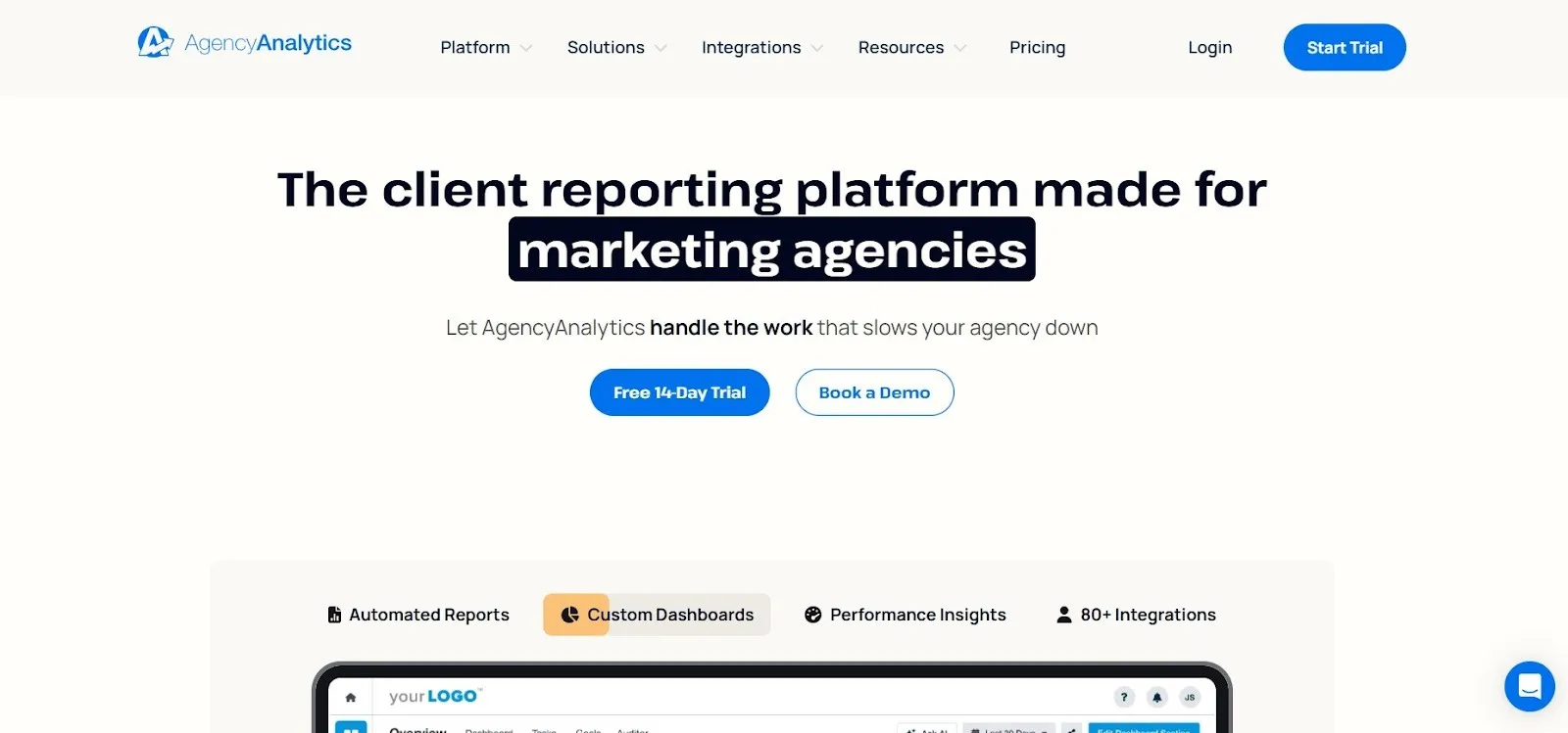 Si desea que los informes se entreguen a través de un portal de clientes que dé prioridad a un panel de control, AgencyAnalytics puede ser una opción sensata.