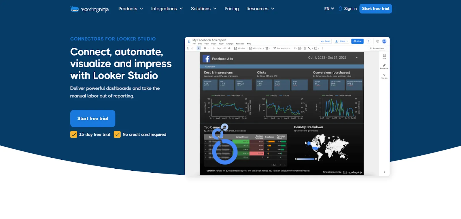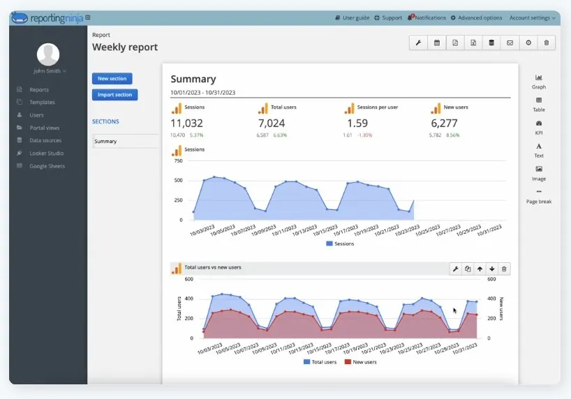 Si tu equipo crea informes en Looker Studio, Reporting Ninja se ajusta a este enfoque con informes basados en conectores y aptos para plantillas.