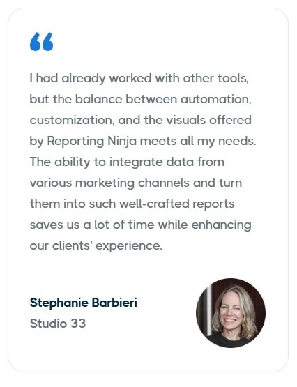 Las agencias suelen elegir Reporting Ninja en lugar de AgencyAnalytics porque ofrece: